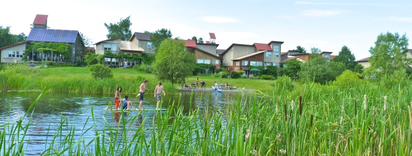 In 1996, EcoVillage at Ithaca in Ithaca, New York was founded by Joan Bokaer and Liz Walker with the help of the Center for Religion, Ethics, and Social Policy at Cornell University. This sustainable community was inspired by co-housing projects that appeared in Denmark in the early 1960’s; with the goal of creating a model community to exemplify sustainable systems of living. This community is a working model and demonstration of 175-acres of meeting human needs, namely shelter, food production, energy, social interaction, work, and recreation while preserving natural ecosystmes.
